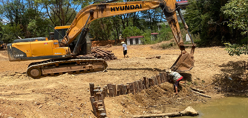 新農村改造魚塘木樁圍欄加固